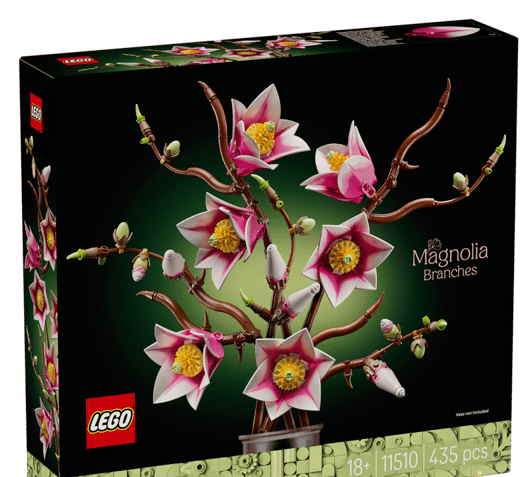 Immerse yourself in nature and create beautiful flower decor with this LEGO® Botanicals Magnolia Branches (11510) building set for adults. Relax as you craft the floral display, which includes 5 highly detailed magnolia branches. This is one of the only LEGO Botanicals sets to include branches and the magnolia petals feature 2 shades of color for added realism. There are also lots of fun details to discover, including cupcake pieces for the flower carpels, brown frogs as wood knots, egg piecesfor the buds and ice cream swirls for the furled bud tips. Once built, the LEGO flowers become gorgeous floral decor and can be combined with other LEGO Botanicals sets (sold separately) to create a larger and customized display. This building kit makes a thoughtful birthday, Valentine’s Day, Mother’s Day or housewarming gift for women, men and nature lovers. It’s also available in the LEGO Builder app, where budding florists can rotate their build and track their progress. Set contains 435 pieces.