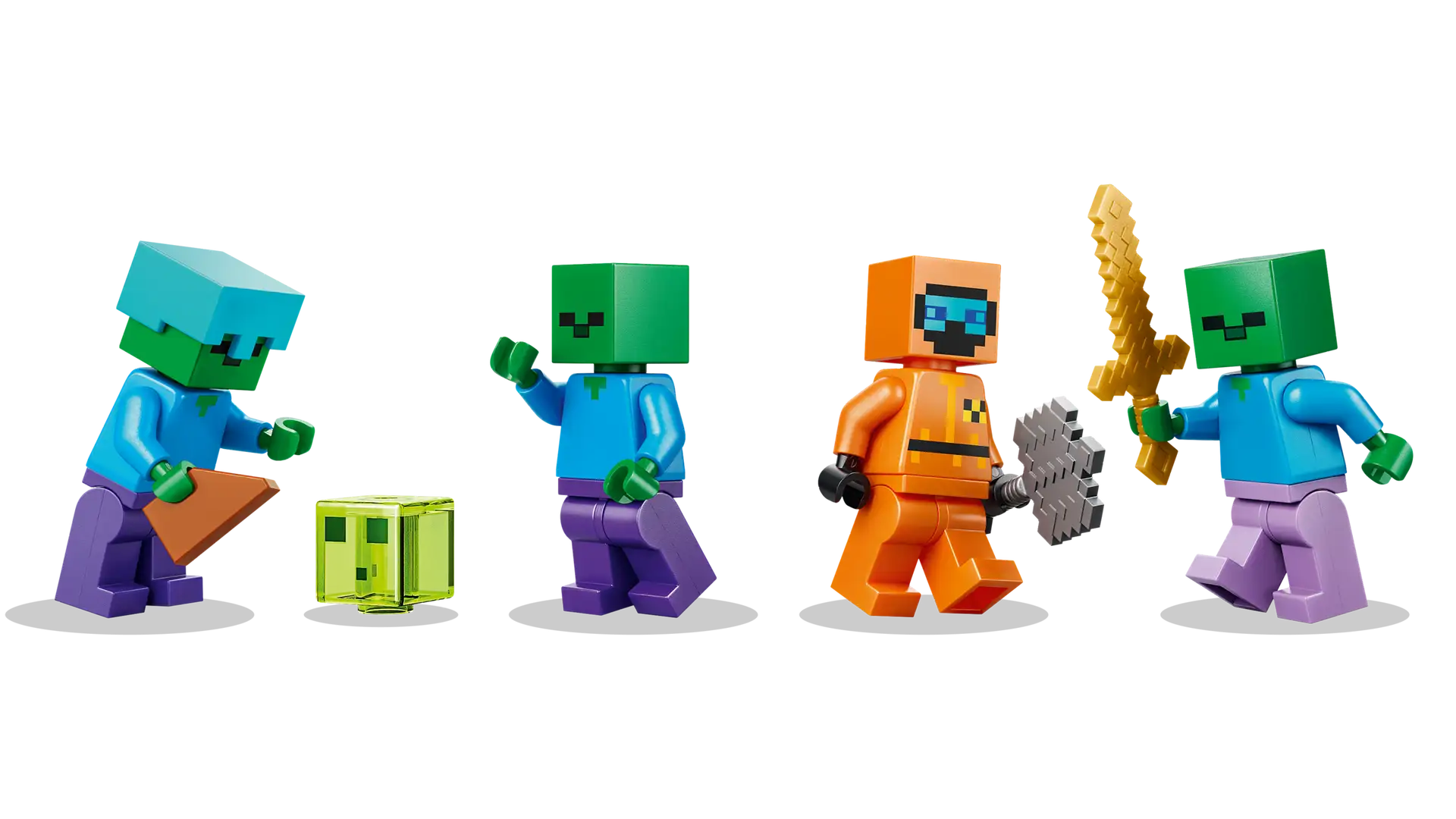 - 3 ZOMBIE FIGURES – Includes a Wastelands Wanderer minifigure, a slime and 3 zombies, including one with enchanted leggings and gold sword and one with diamond helmet
