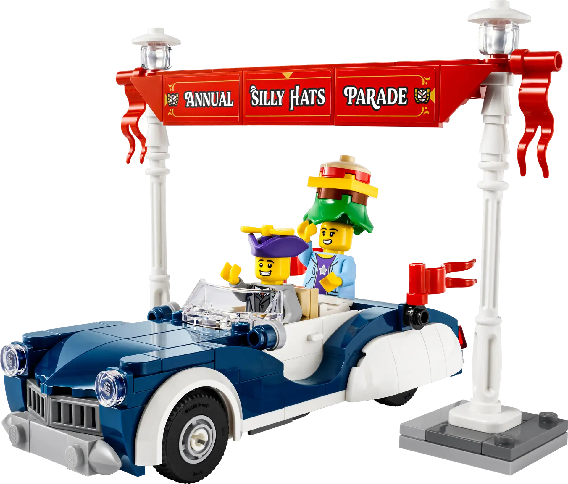 - COLLECTIBLE LEGO® SET – This LEGO Icons set includes all you need to build a classic parade car, plus 2 vintage lampposts, a parade banner and 2 minifigures with accessories